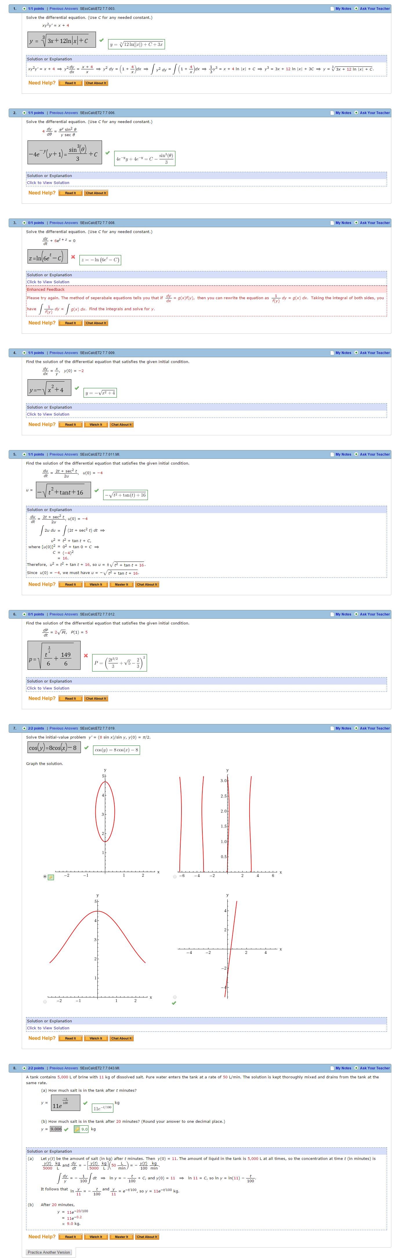 6 problems with solutions · 1 answer screenshot