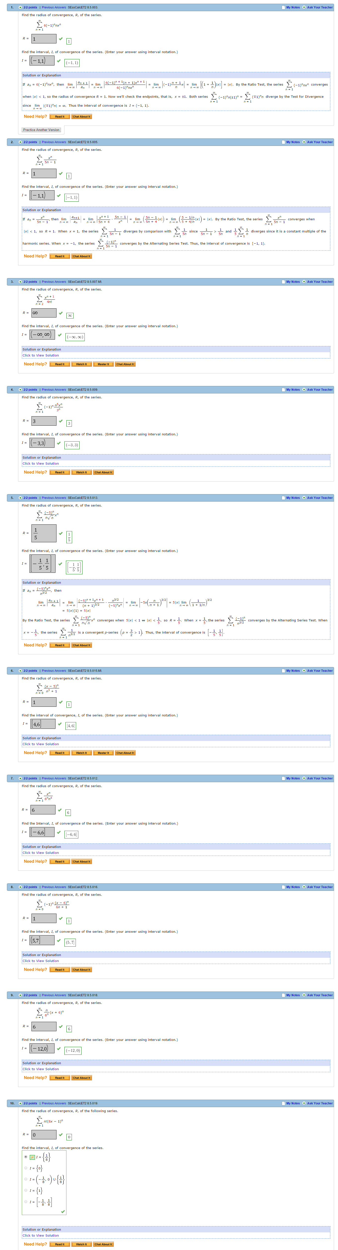9 problems with solutions · 1 answer screenshot